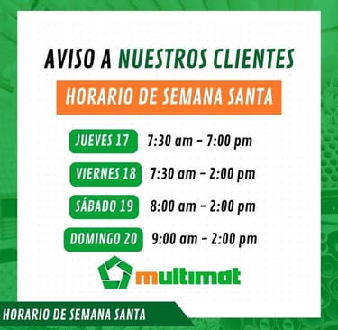 Lunes a Viernes: 7:30 am a 7 pm Sábado: 8 am a 6 pm